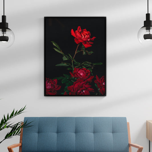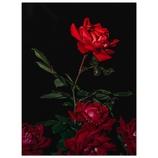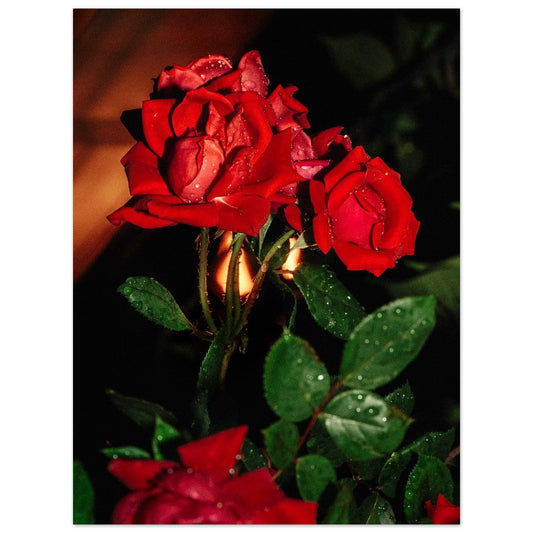Red Roses at Night, Unframed Semi-Glossy Print of Flowers After Rain