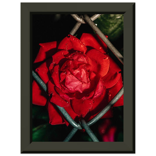 Red Rose in a Fence Wall Art, Semi-Glossy Framed Print